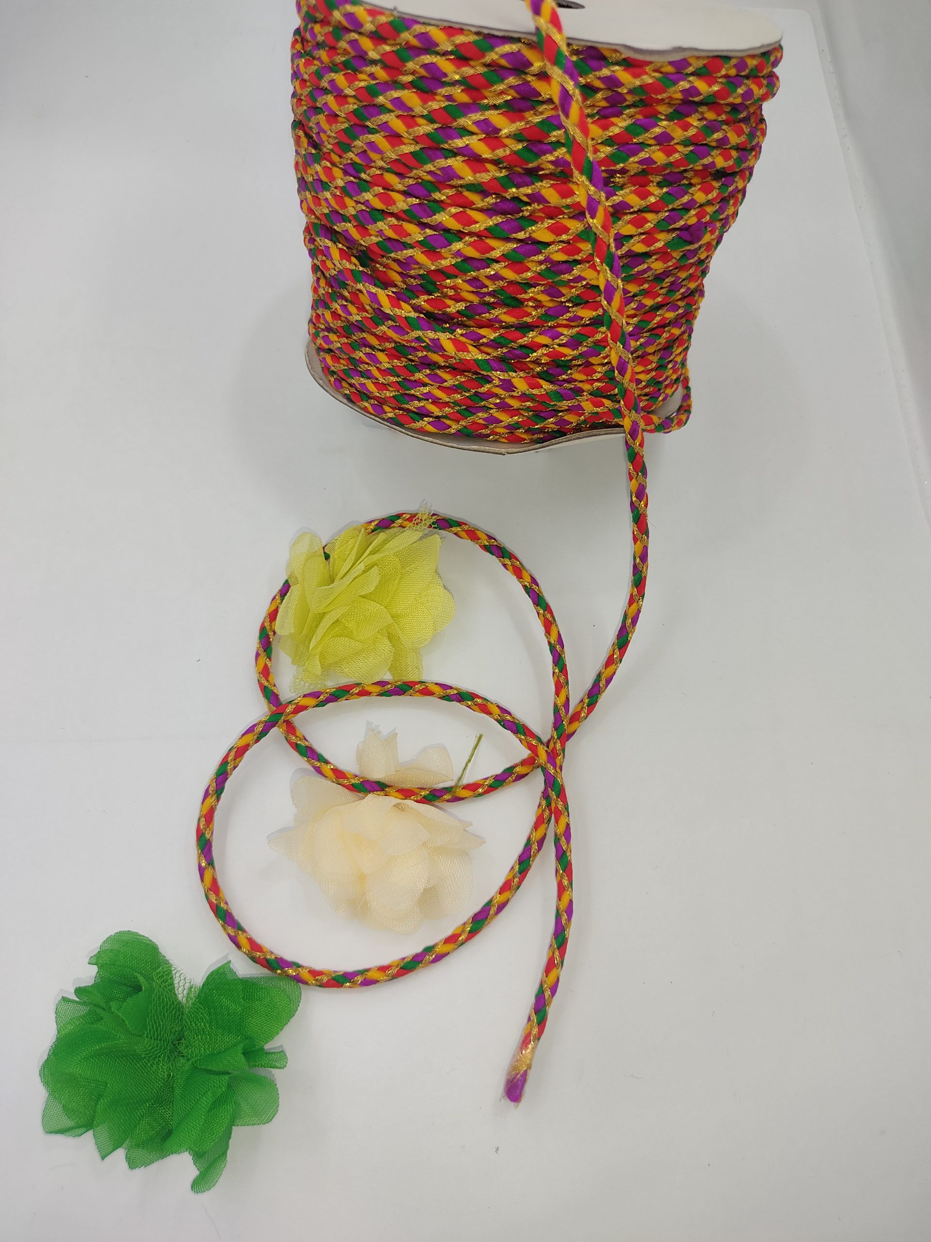 نوار بند قیطون نخی هفت رنگ توپ 36متری